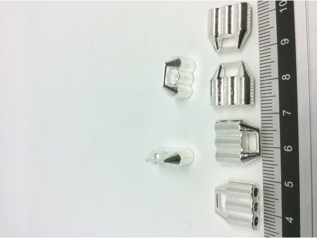 6 cord end 3 cords 14x14mm silver plated, 3mm inside diameter, zinc alloy based